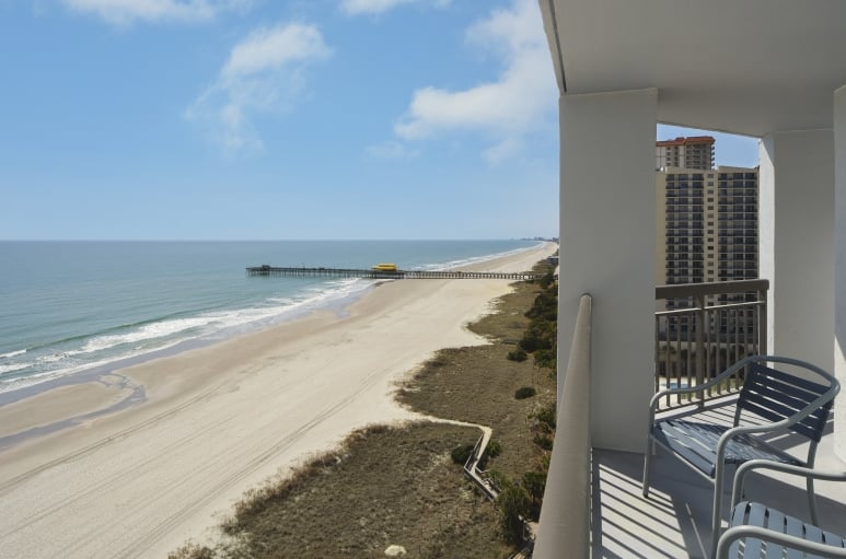 Enjoy the comforts of home in this two-room suite including a private bedroom with a king-sized bed and bathroom with accessible tub. Take your Myrtle Beach getaway to the next level with upgraded amenities like a Keurig Coffee Brewer, snacks and drinks.