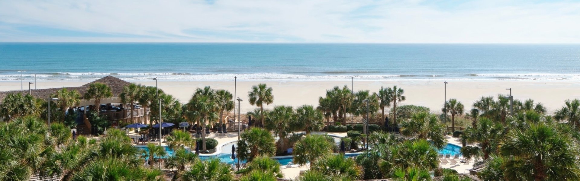 Unwind in this comfortable condo with a private balcony offering calming Atlantic Ocean views. This spacious 500 sq. ft. guest room with a king bed includes a bathroom with modern amenities and a kitchen with granite accents, microwave, refrigerator, and wet bar.